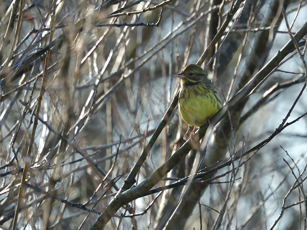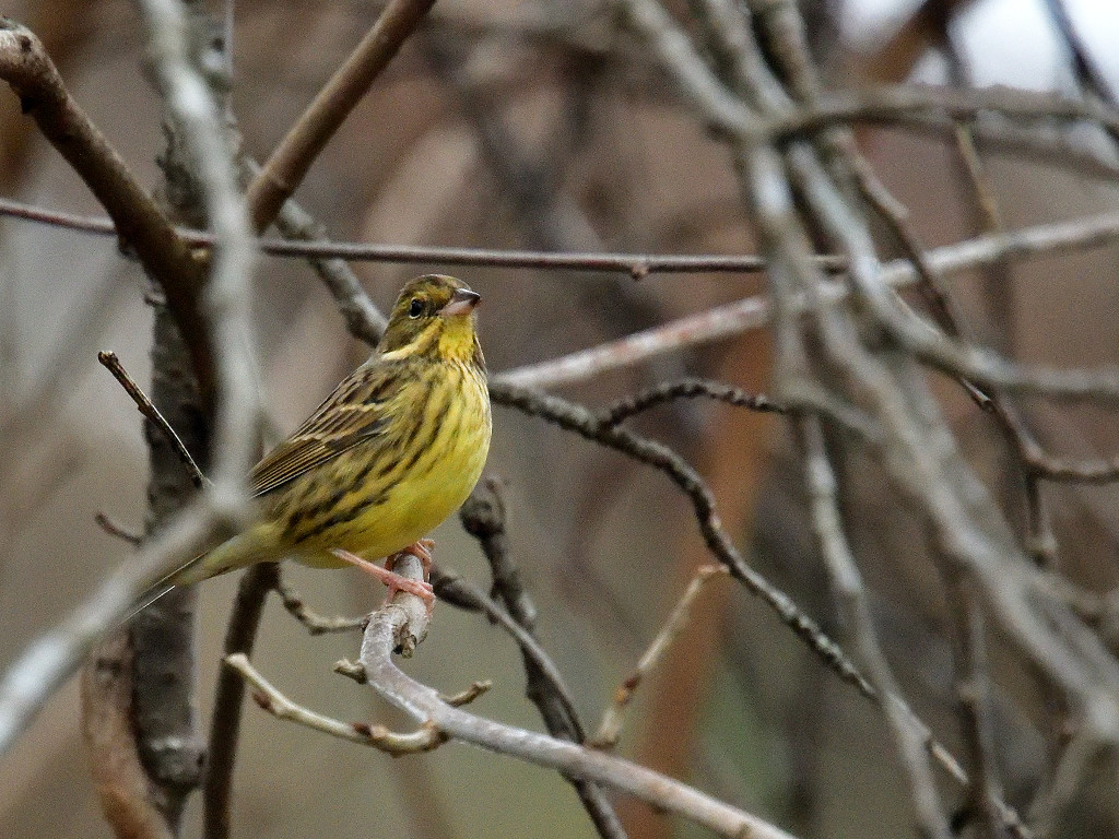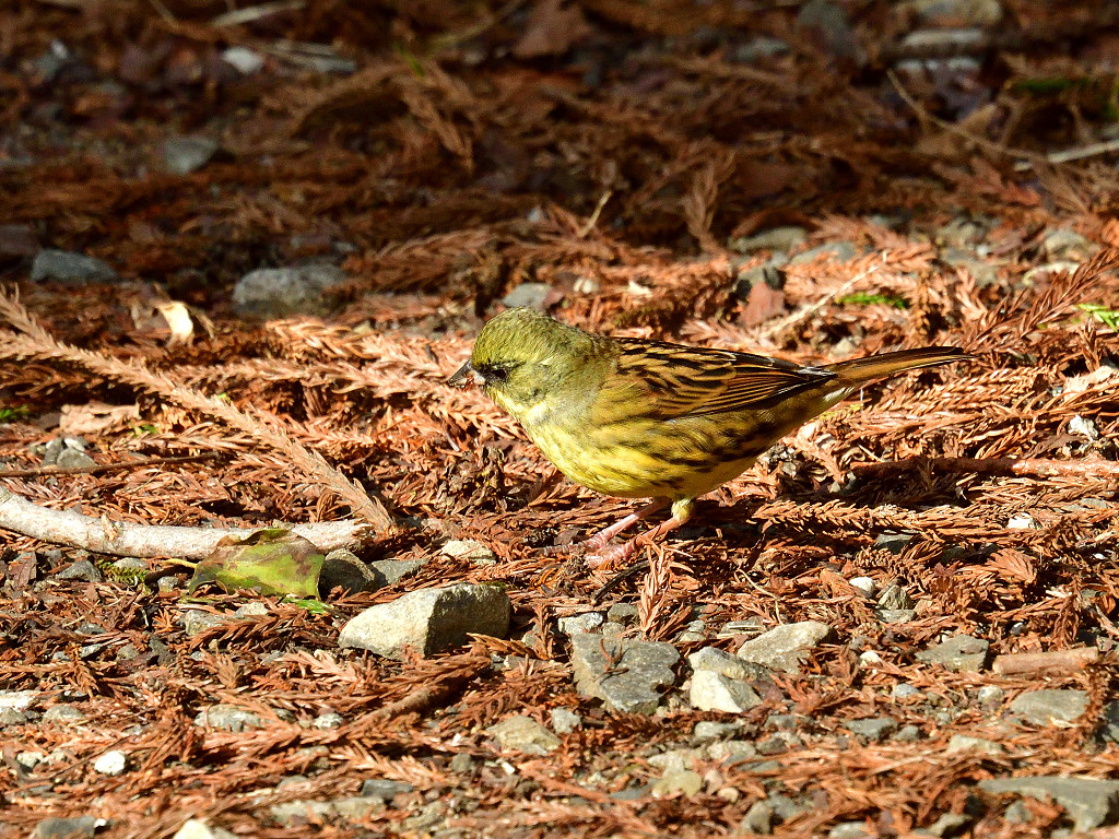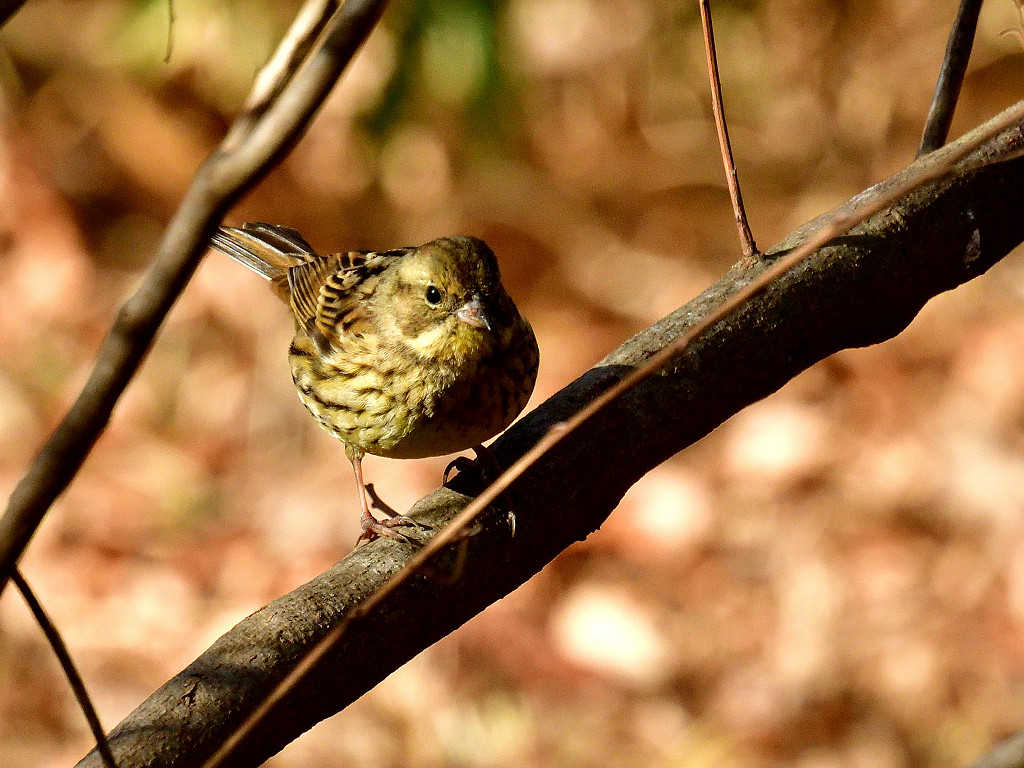 下面に黄色味のある地味な鳥(ノジコに似る)