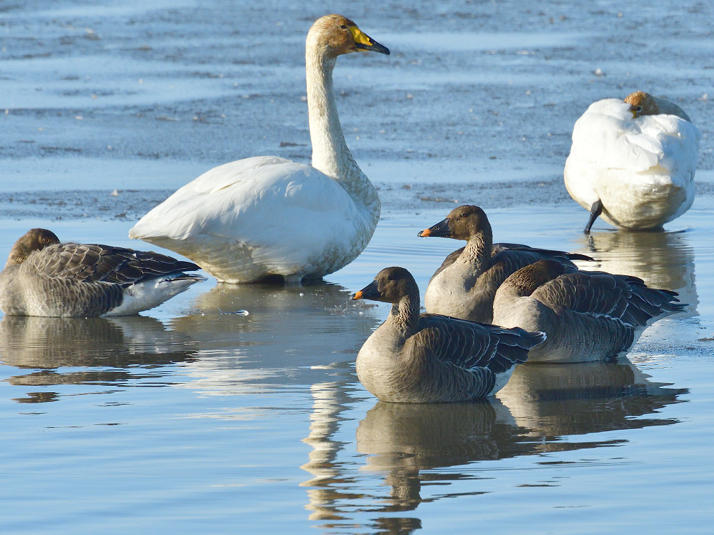 ヒシクイとの違いは、@体が大きい A首が長い B嘴が長い C頭から嘴まで直線的 D下嘴が薄く水平 などです