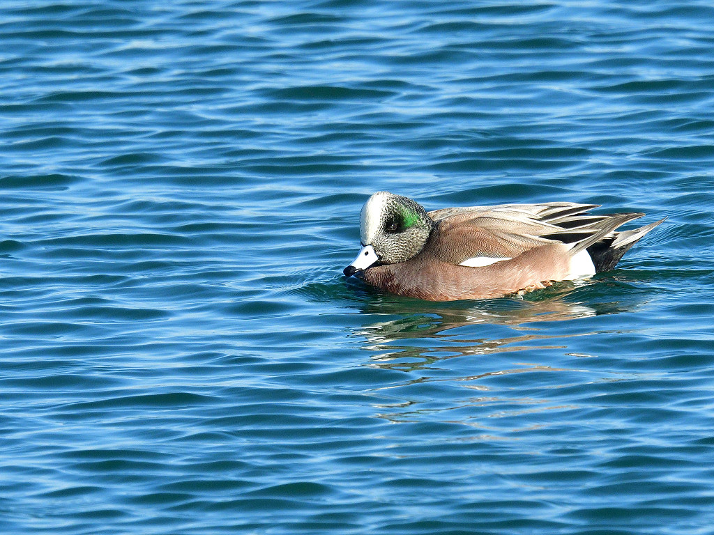 に混ざって見られる アメリカヒドリには嘴の付け根に黒い縁取りがあります (♂も♀)見分け方の特徴です