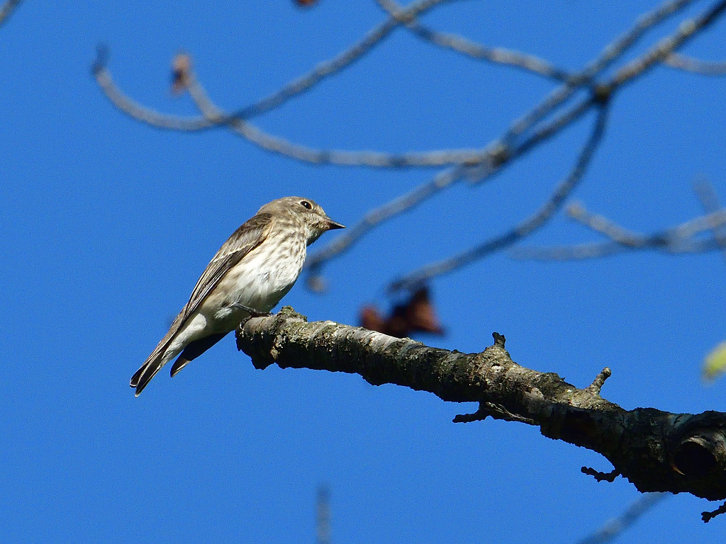 胸の縦斑の目立つ「ヒタキ」 ミズキの実を好んで食べる