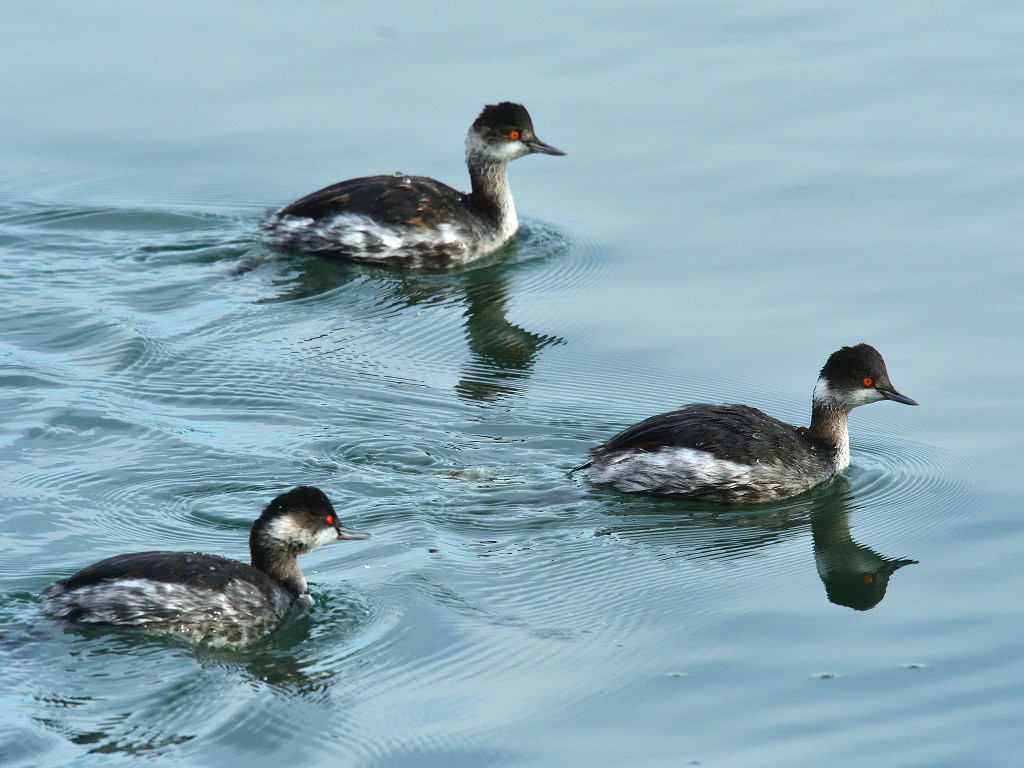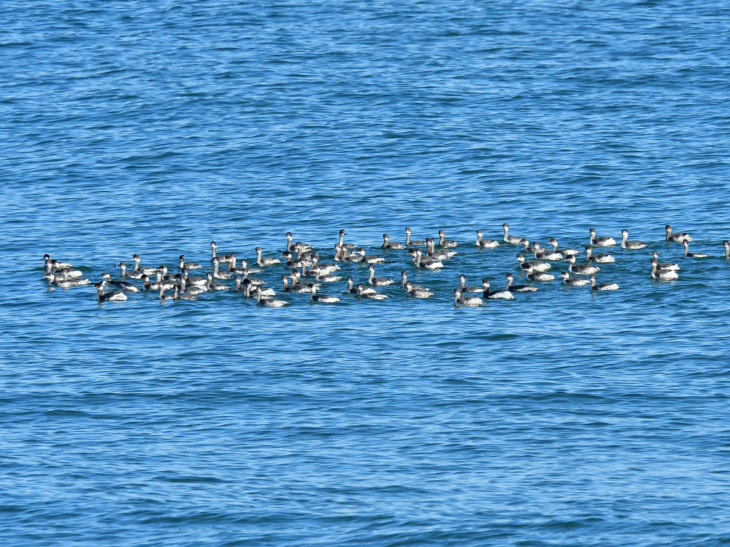 日本には冬鳥として各地に飛来する。春には目の後ろに金色の飾り羽のある渡去前の姿が見られる (仲間)