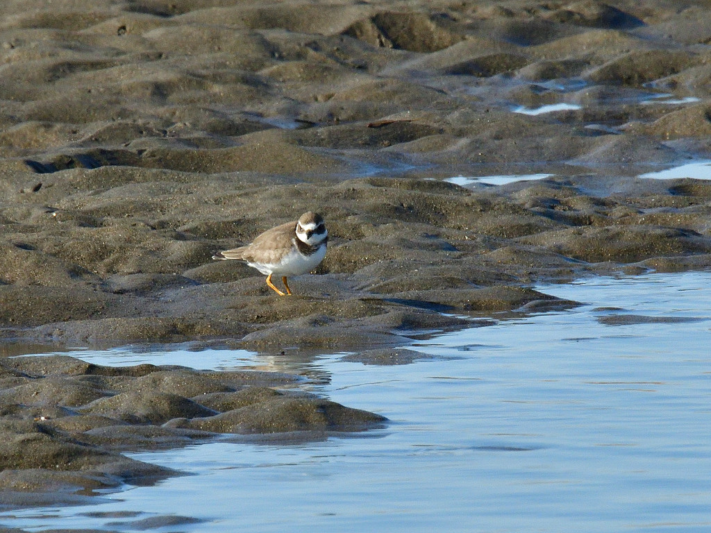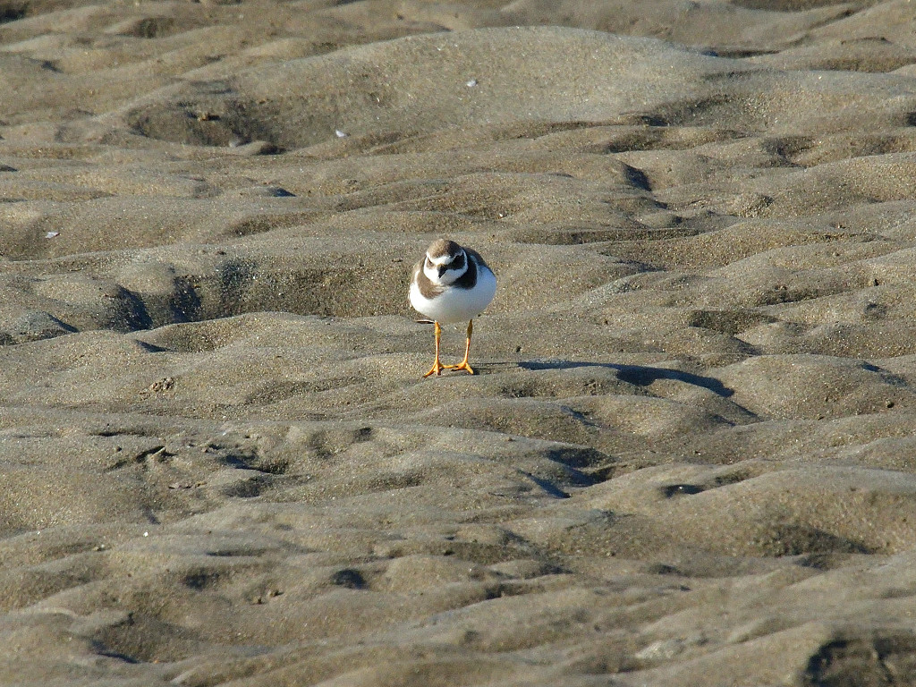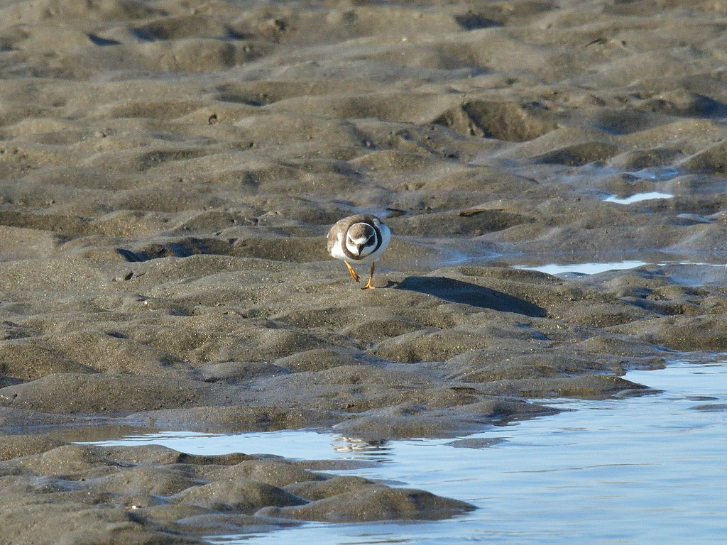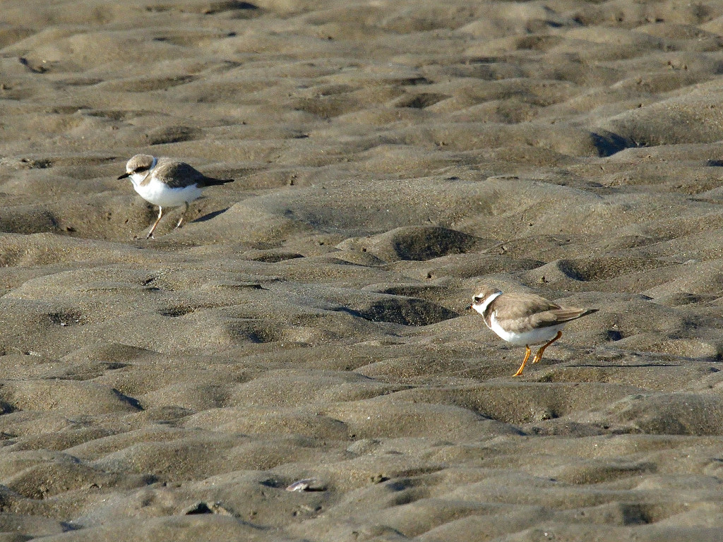 に似ているが、やや大きく、肢は橙黄色、アイリングはない 飛行中は羽に白帯が見られる