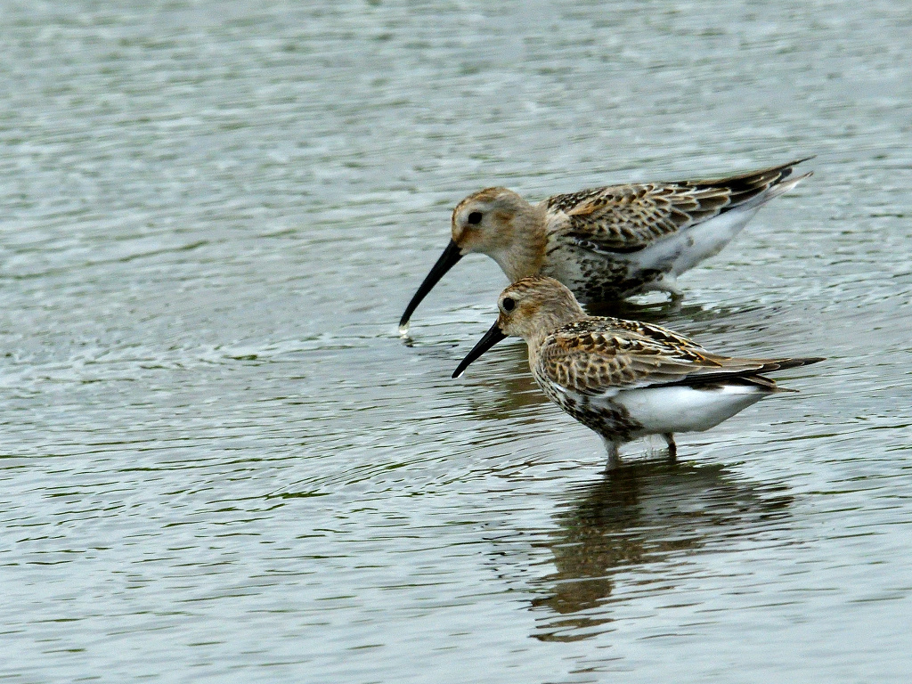 頭部より長めでやや下向きに曲がったくちばしをもつ。日本には旅鳥または冬鳥として渡来する。夏羽では腹部に特徴のある大きな黒い班があり、冬羽では背面が灰色です。