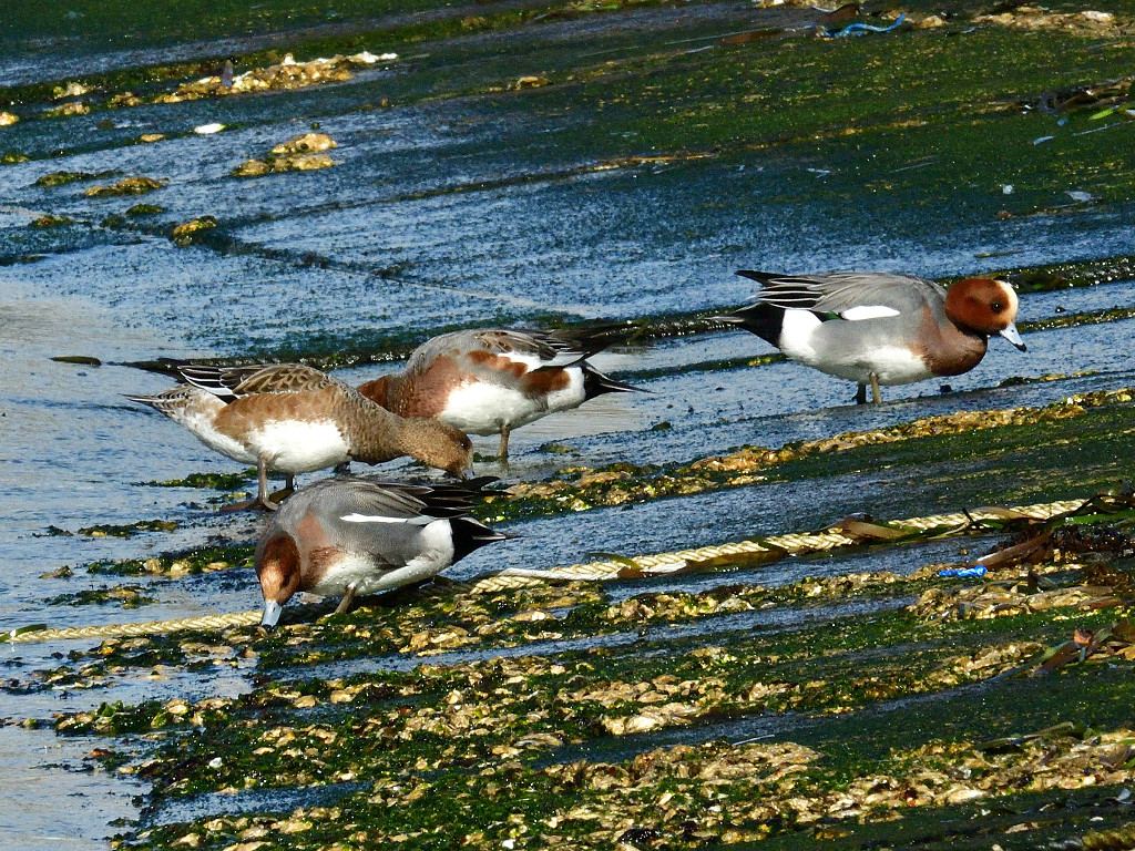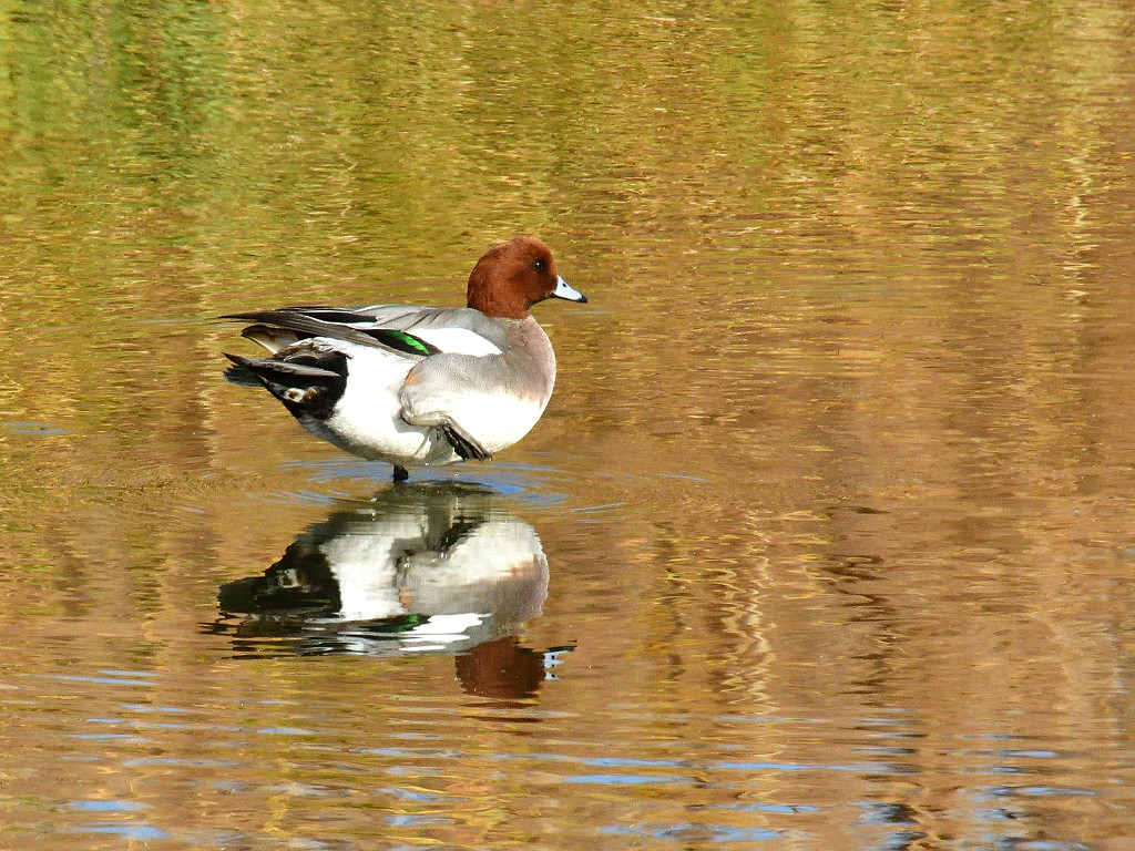 日本には冬鳥として渡来 オスは頭上が黄白色で頭部は茶褐色、メスは頭部全体が濃い茶褐色をしている くちばしはいずれも灰色。