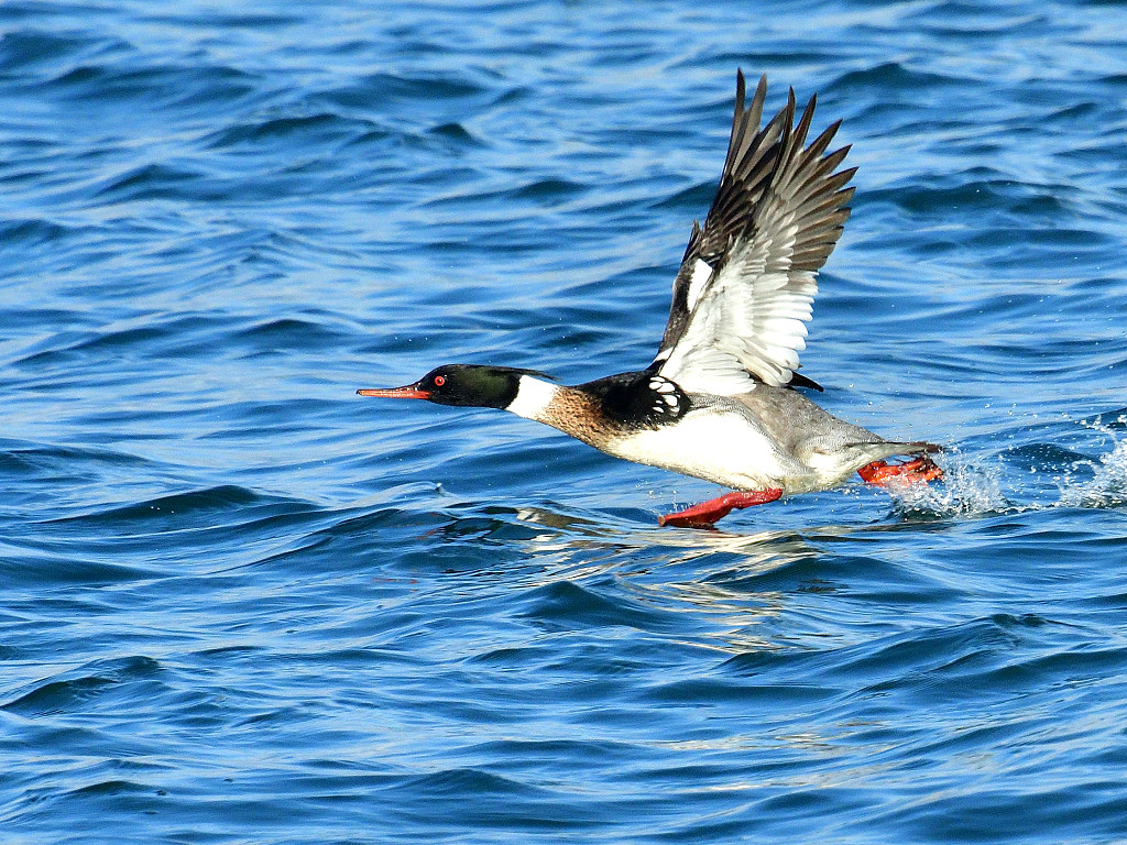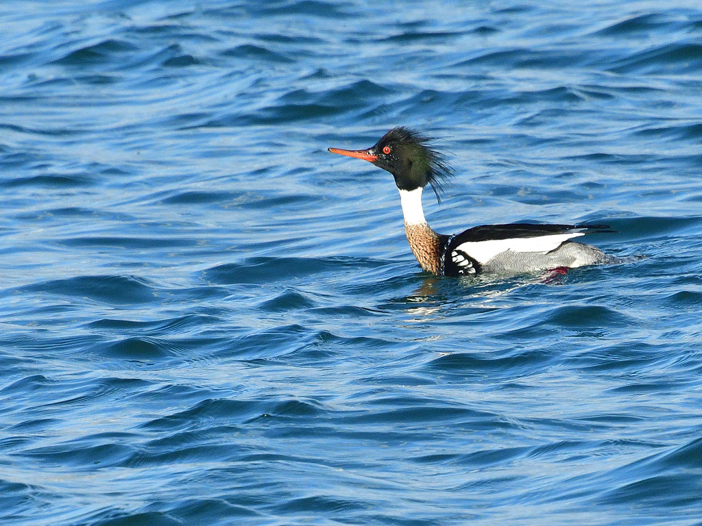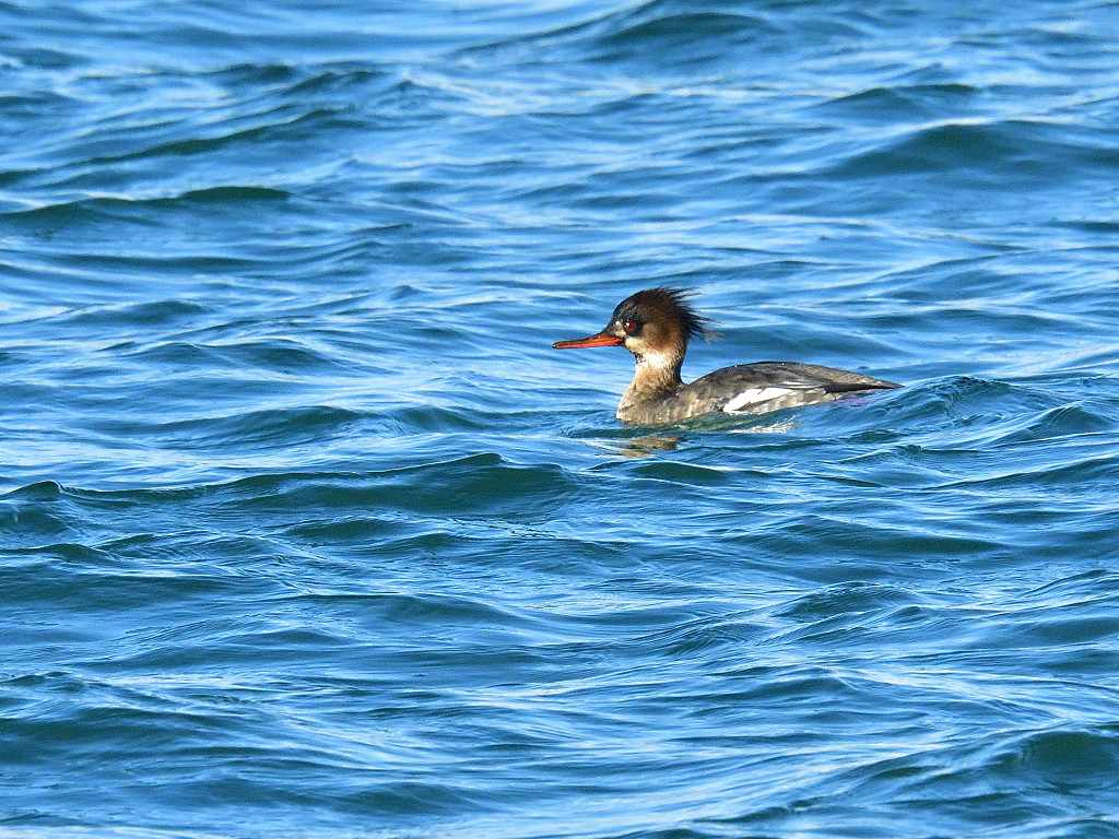 ぼさぼさした冠羽のある頭が特徴 日本には冬鳥として渡来 赤い嘴を持ち、